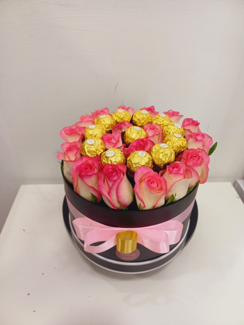 15 Jumilia roses thoughtfully arranged with 11 chocolates in a